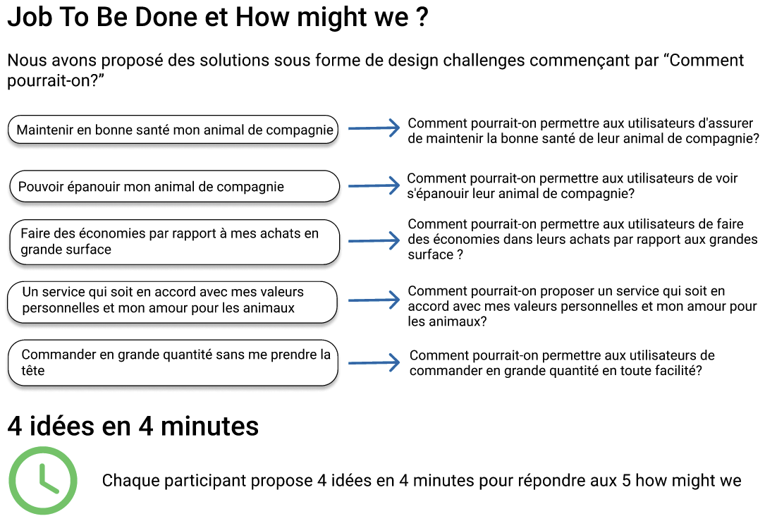 Les entretiens ont rĂ©vĂ©lĂ© plusieurs insights sur les propriĂ©taires dâanimaux : leurs frustrations (coĂ»t, dĂ©lai de livraison), leurs besoins (diversifier lâalimentation, prĂ©server la santĂ© de leur animal) et lâimportance de la fidĂ©lisation (bĂ©nĂ©ficier dâoffres, accumuler des points pour obtenir des produits gratuits).